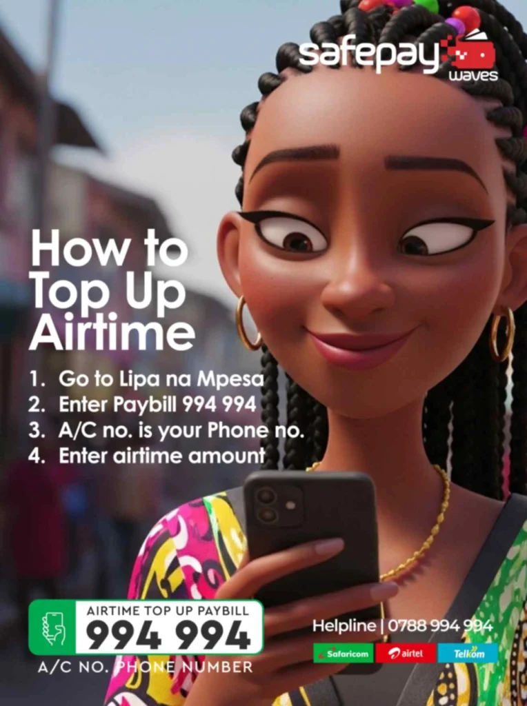 SafePay Waves’ M-Pesa paybill service works differently. Whether you’re buying airtime for yourself or sending airtime to family members, the process remains consistent and reliable.