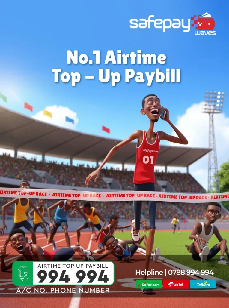 SafePay Waves makes it simple to buy airtime across all major networks in Kenya using M-Pesa Paybill 994994.
